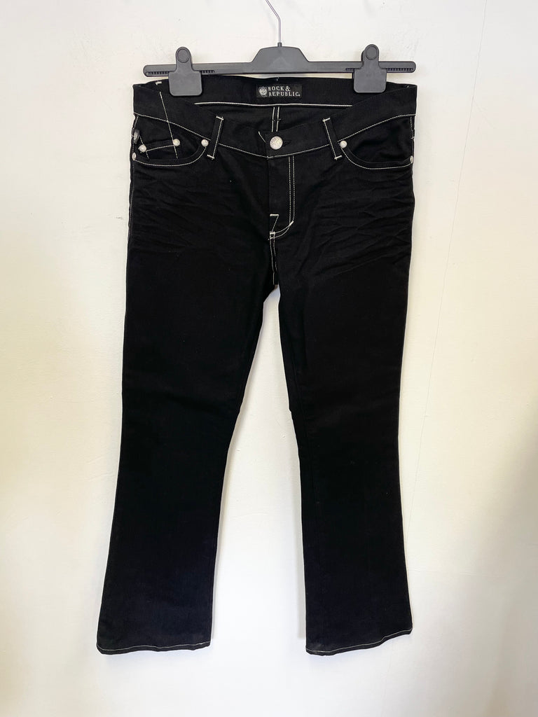 BRAND NEW ROCK & REPUBLIC BLACK WITH SILVER SEQUIN EMBOSSED POCKET BOOTCUT JEANS SIZE 30