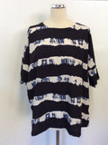 BRAND NEW SAHARA NAVY BLUE & IVORY PRINT SHORT SLEEVE TOP SIZE S/M