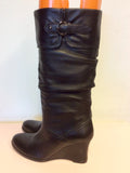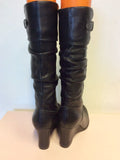 Brand New Staccato Black Leather Slouch Wedge Heel Boots Size 3.5/36