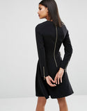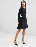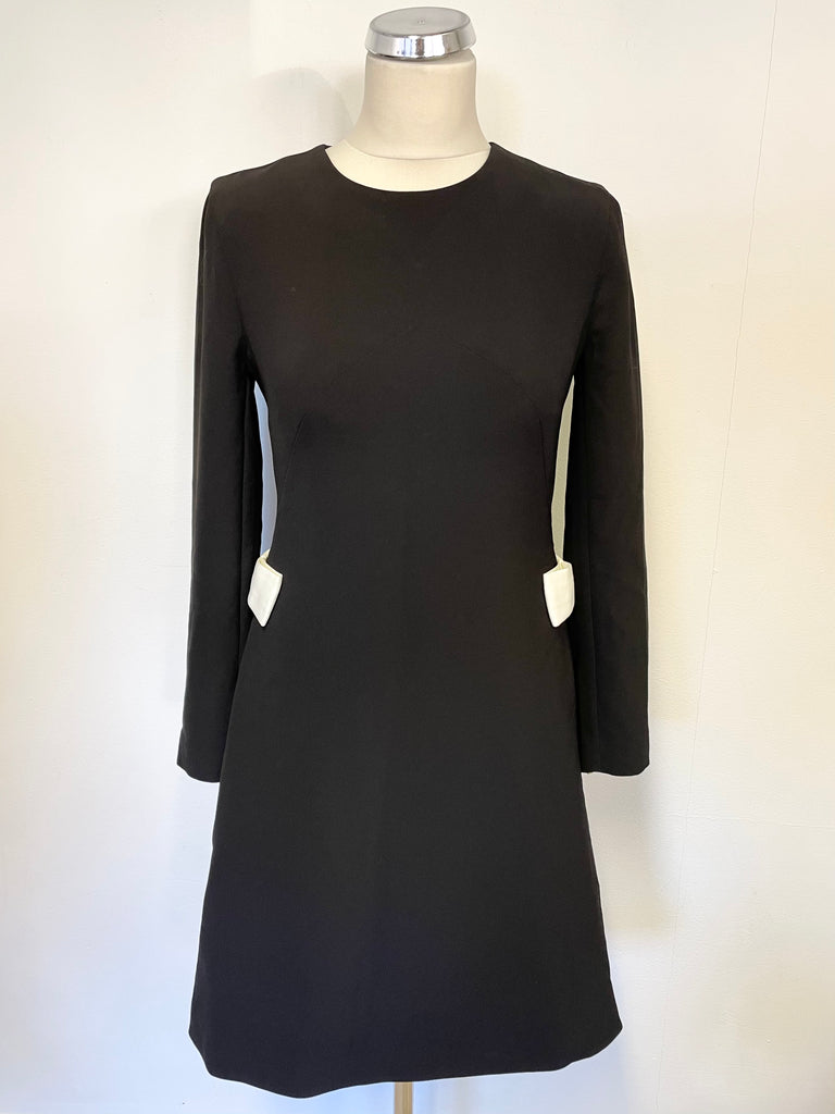 BRAND NEW TED BAKER EMORY BLACK WITH SIDE WHITE BOWS LONG SLEEVE DRESS SIZE 1 UK 8/10