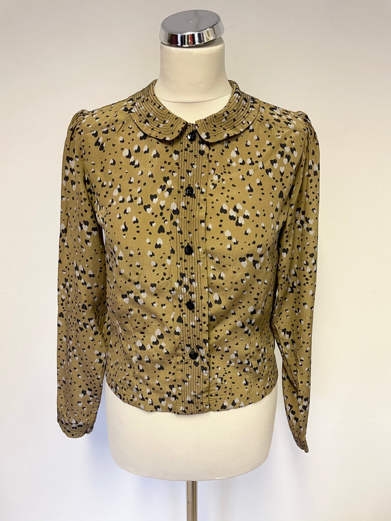 BRAND NEW WITH TAGS TWENTY8TWELVE KANGAROO BROWN WITH BLACK & GREY HEART PRINT SILK BLOUSE