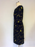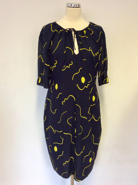 BRAND NEW WHISTLES NAVY BLUE & YELLOW PRINT SILK TIE NECK DRESS SIZE 14