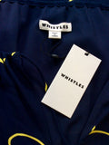 BRAND NEW WITH TAGS WHISTLES MAGNOLIA NAVY BLUE & YELLOW PRINT TIE NECK SILK DRESS