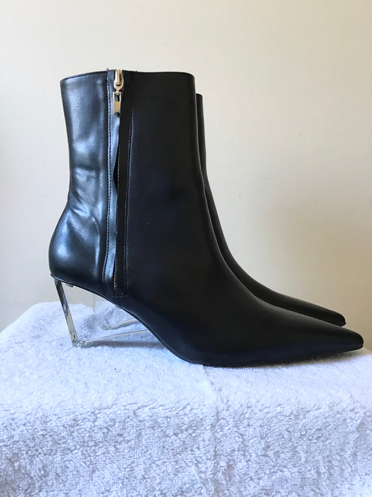 BRAND NEW ZARA BLACK LEATHER PERSPEX HEEL ANKLE BOOTS SIZE 7/40