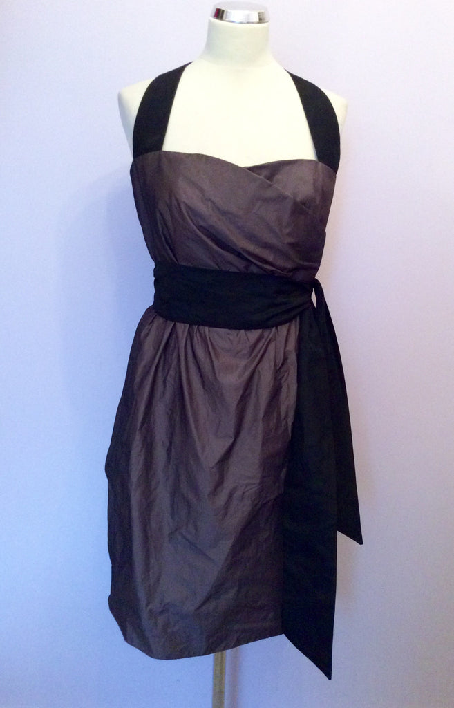 Brand New Zara Brown & Black Trim Halterneck Dress Size XL