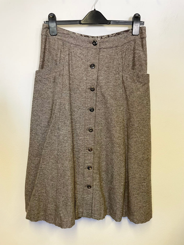 BRORA BROWN HERRINGBONE TWEED A-LINE MIDI SKIRT SIZE 12