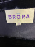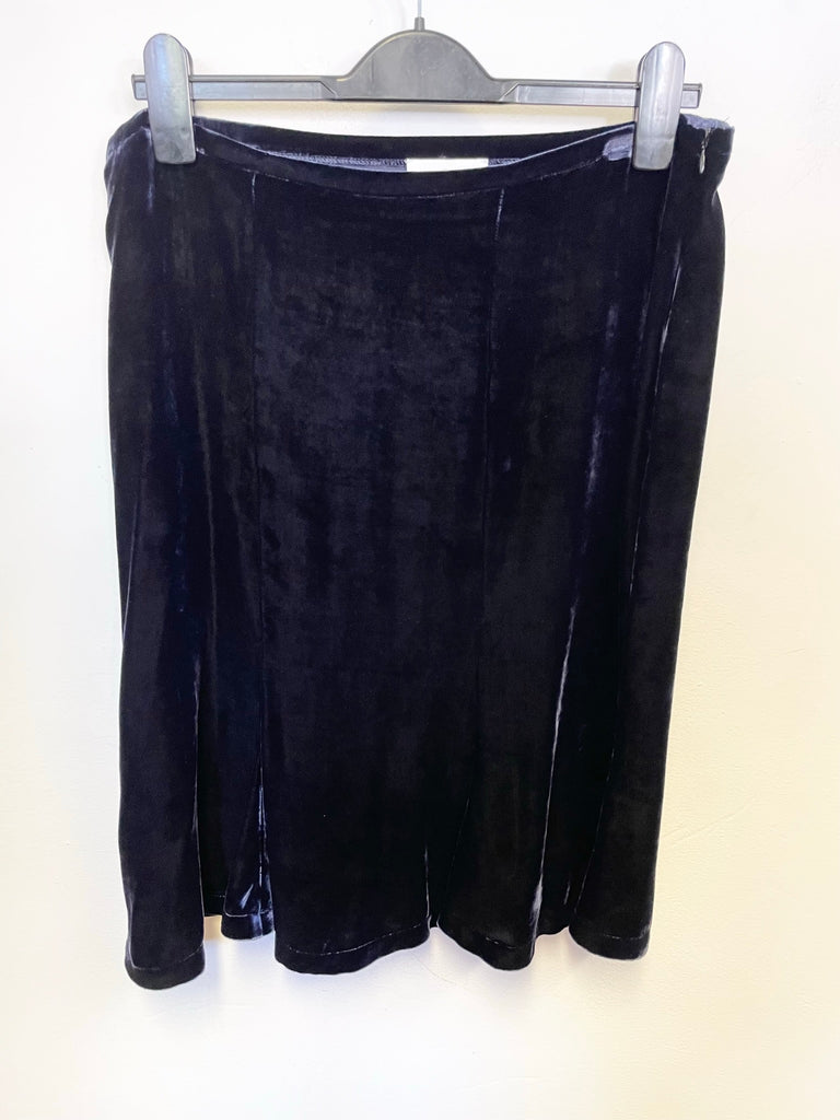 BRORA NAVY BLUE VELOUR FLUTED HEM SKIRT SIZE 12