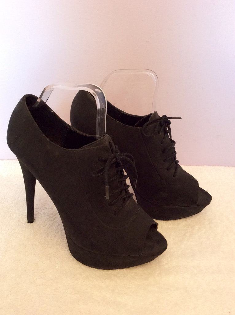 Carvela Black Suede Lace Up Peeptoe Heels Size 7/41