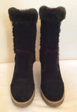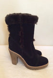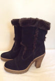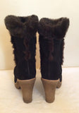 Carvela Dark Brown Suede & Faux Fur Trim Ankle Boots Size 5/38