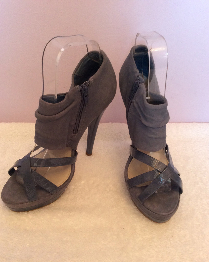 Carvela Grey Open Toe Leather Straps & Suede Upper Heels Size 4/37
