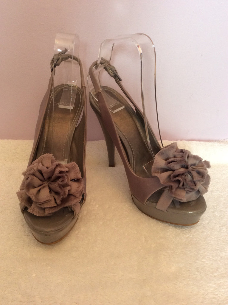 Carvela Grey Satin Corsage Peeptoe Slingback Heels Size 5/38