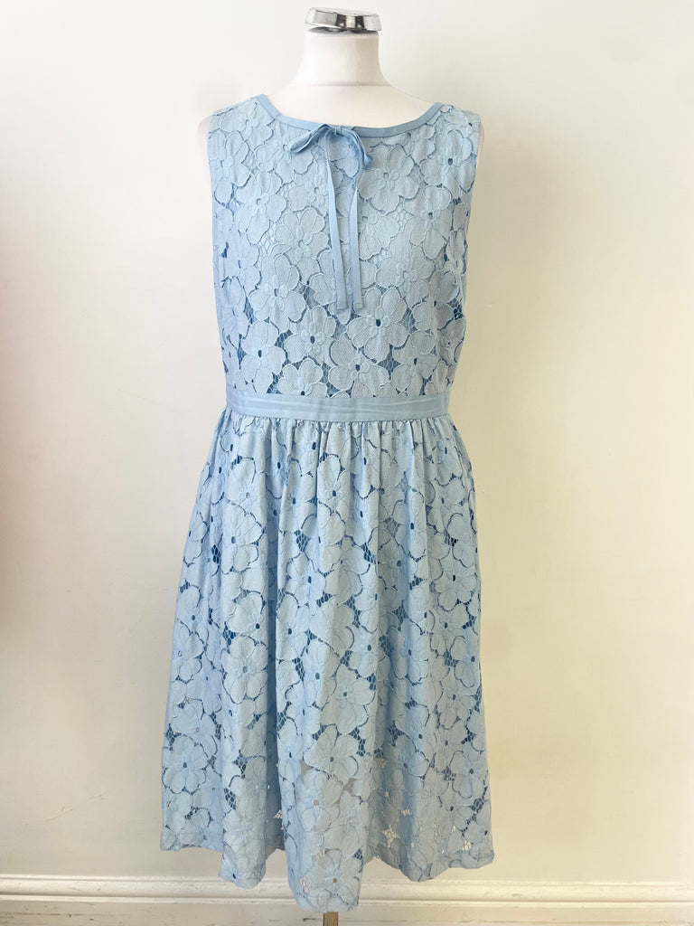 CATH KIDSTON LIGHT BLUE BRODERIE ANGLAISE SLEEVELESS FIT & FLARE DRESS SIZE 14