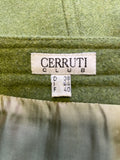 CERRUTI CLUB GREEN 100% WOOL FLORAL EMBROIDERED FRONT A-LINE SKIRT