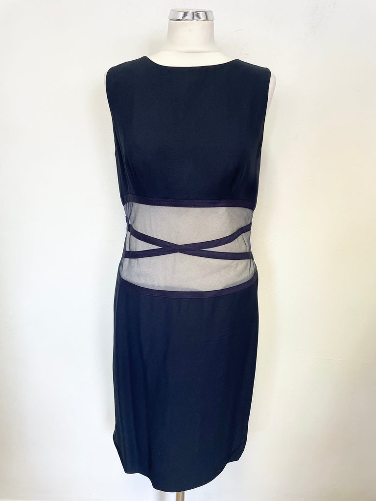 CHEAP & CHIC BY MOSCHINO NAVY BLUE MESH WAISTED SLEEVELESS PENCIL DRESS
