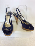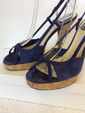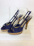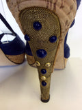 CHRISTIAN DIOR BLUE SUEDE JEWEL TRIM HEEL SANDALS SIZE 7.5 / 41