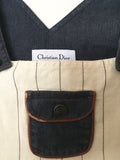 CHRISTIAN DIOR CREAM STRIPE & DENIM BLUE PINAFORE DRESS