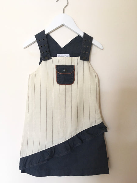CHRISTIAN DIOR CREAM & DENIM BLUE PINAFORE DRESS AGE 6 YEARS