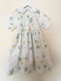 CHRISTIAN DIOR WHITE WITH GREEN & YELLOW DAISY PRINT COTTON DRESS