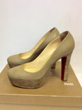 CHRISTIAN LOUBOUTIN BIBI 120 BEIGE CALF LEATHER PLATFORM HEELS SIZE 6/39