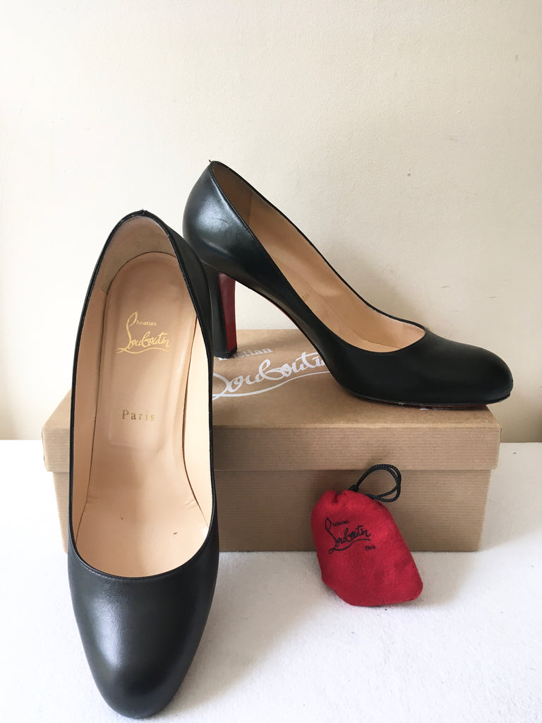 CHRISTIAN LOUBOUTIN BLACK MISS TACK 85 CALF LEATHER HEELS SIZE 7/40.5