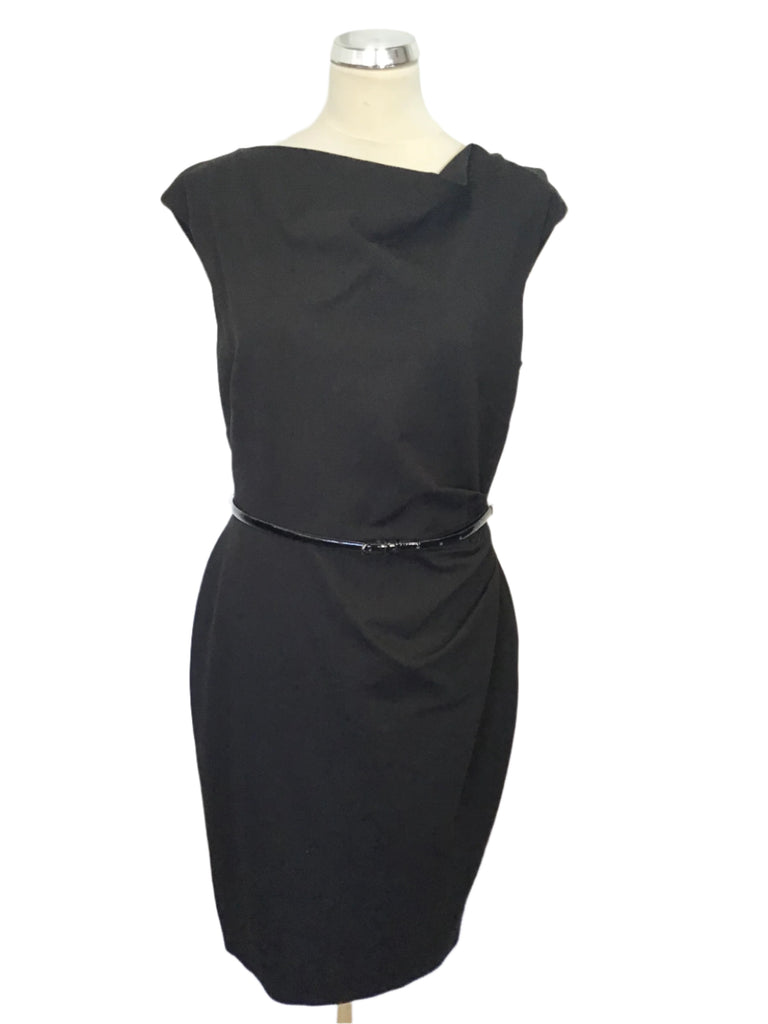 COAST BLACK DRAPED NECKLINE SLEEVELESS PENCIL DRESS SIZE 16
