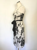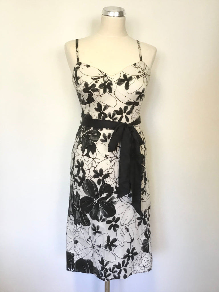 COAST BLACK & IVORY FLORAL PRINT TIE BELT STRAPPY PENCIL DRESS SIZE 14