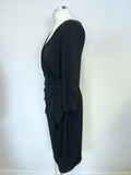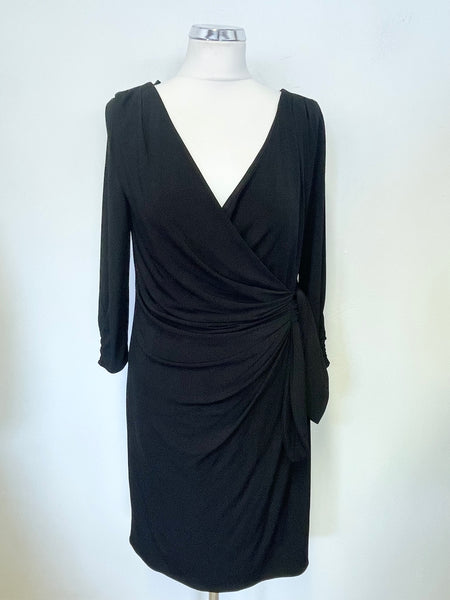 COAST BLACK JERSEY 3/4 SLEEVED WRAP ACROSS BODICE PENCIL DRESS SIZE 14