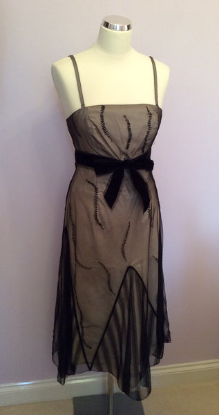 Coast Black Net Overlay Beaded Trim Strappy / Strapless Dress Size 10