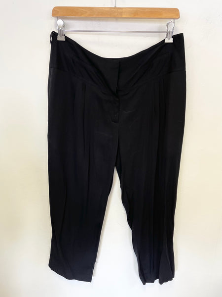 COAST BLACK SILK PLEATED FRONT TAPERED LEG CROPPED TROUSERS SIZE 12