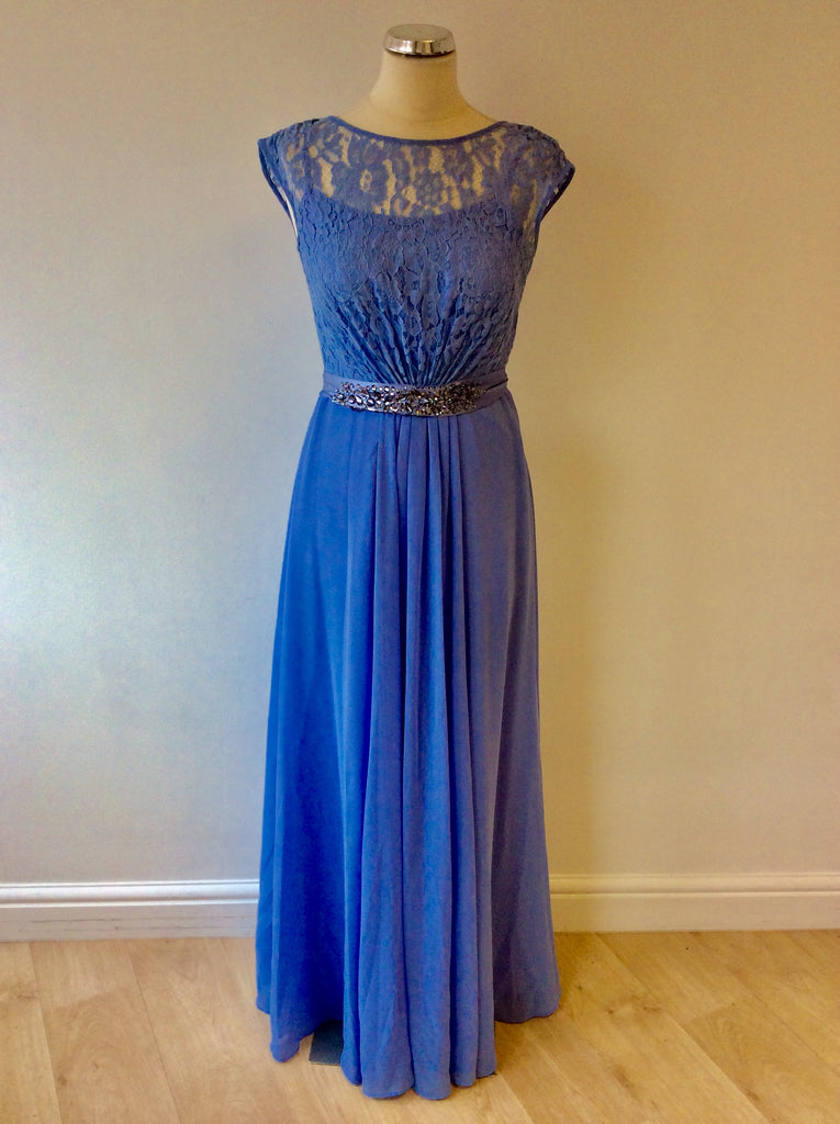 COAST CORNFLOWER BLUE LACE LONG SPECIAL OCCASION/EVENING DRESS SIZE 8