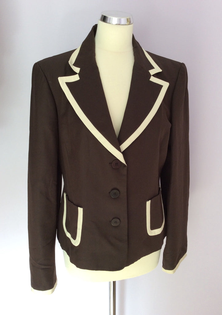 Coast Dark Brown & Ivory Trim Jacket Size 16