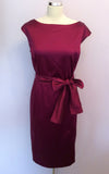 Coast Dark Red Wine Pencil Dress With Sash Belt Size 18