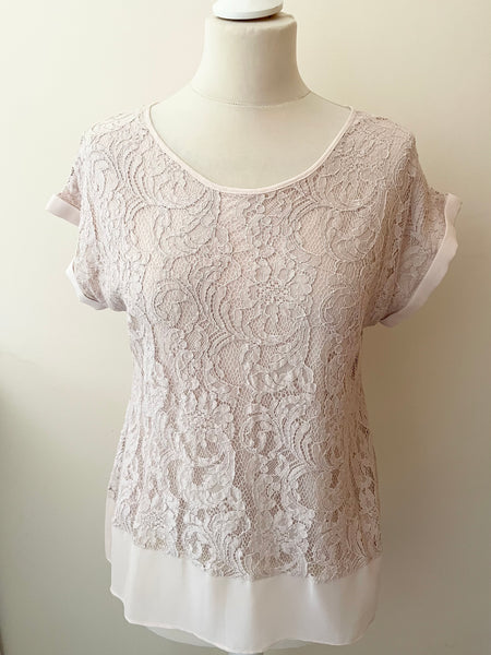 COAST NUDE/ BLUSH LACE CAP SLEEVE TOP SIZE 12