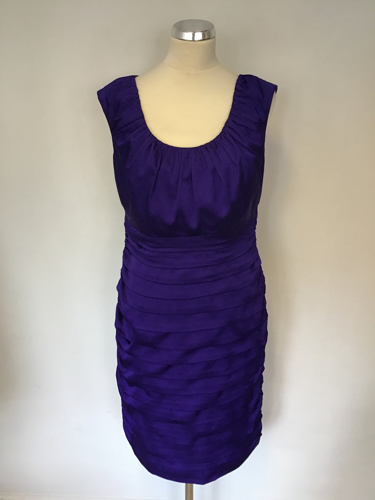 COAST PURPLE PLEATED SPECIAL OCCASION PENCIL DRESS SIZE 16