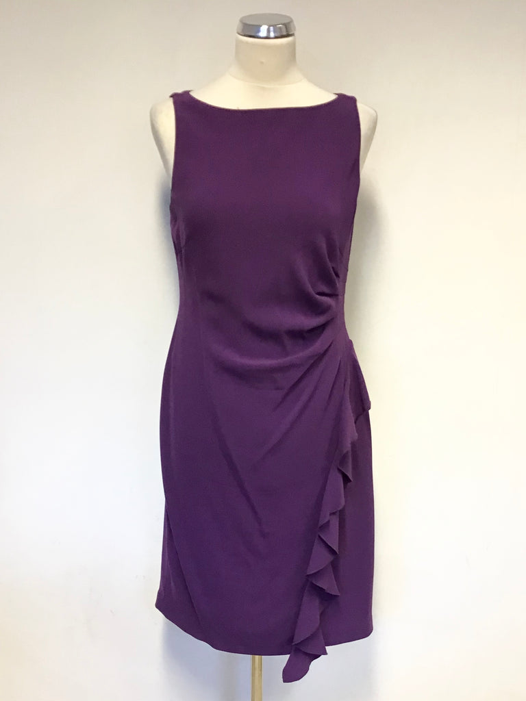 COAST PURPLE SLEEVELESS PENCIL DRESS WITH FRILL TRIM SIZE 14