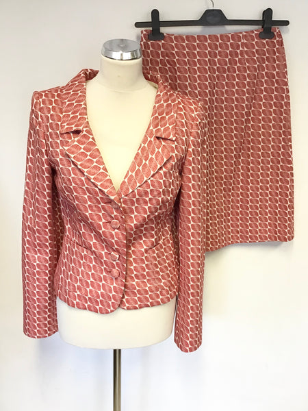 COAST RED & IVORY PRINT A LINE SKIRT & JACKET SUIT SIZE 8/10
