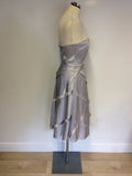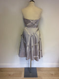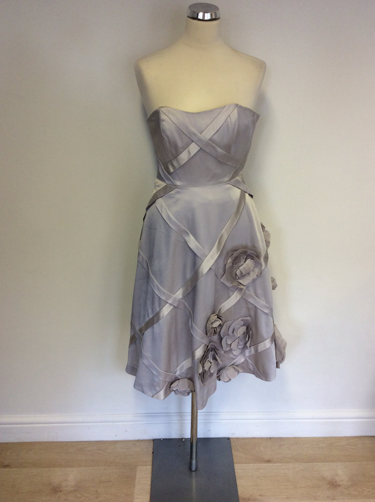 COAST SILVER GREY STRAPLESS APPLIQUÉ TRIM OCCASION DRESS SIZE 8