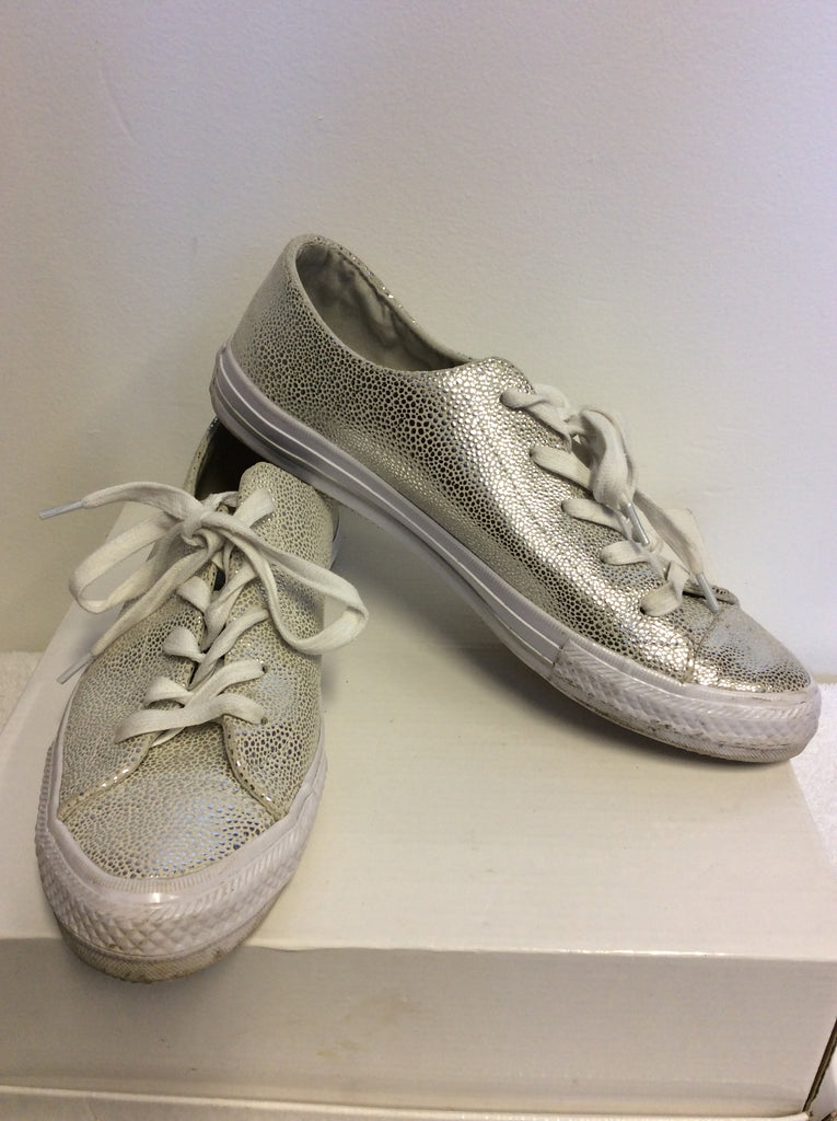 CONVERSE ALL STAR SILVER SPARKLE LEATHER PLIMSOLS SIZE 6/39