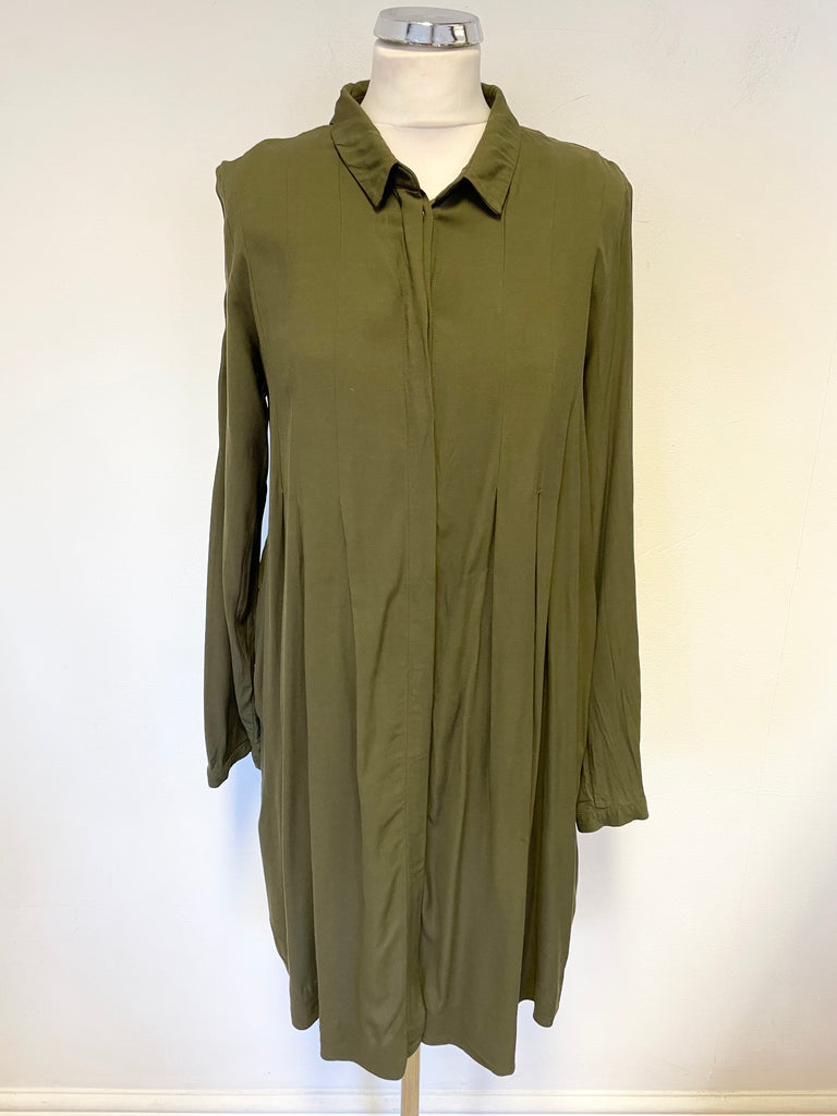 COS OLIVE GREEN COLLARED BUTTON FRONT  LONG SLEEVED SHIRT DRESS