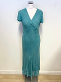 COUNTRY CASUALS TURQUOISE BIAS CUT SHORT SLEEVED MIDI DRESS SIZE 14