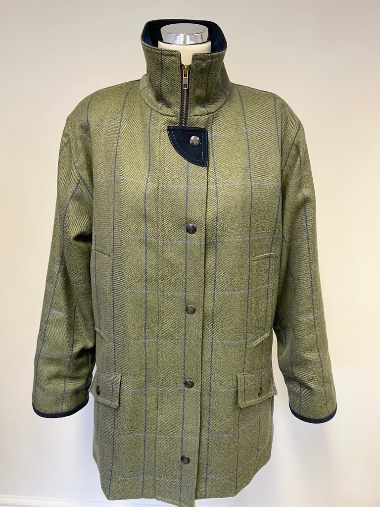 COUSINS OF CHELTENHAM GREEN TWEED WOOL & BLUE CHECKS COUNTRY JACKET