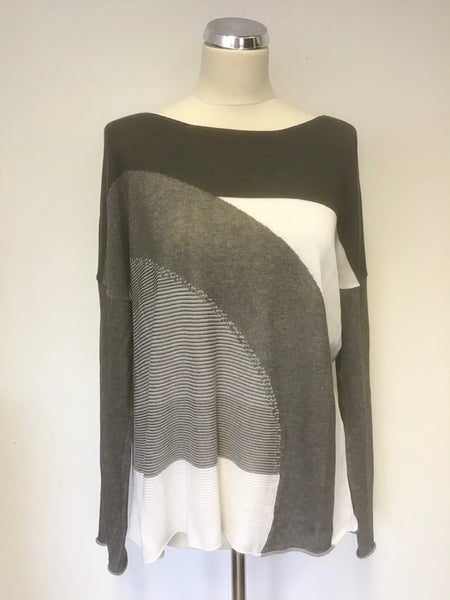 CREA CONCEPT GREY & WHITE DESIGN FINE KNIT JUMPER SIZE 42 UK 16