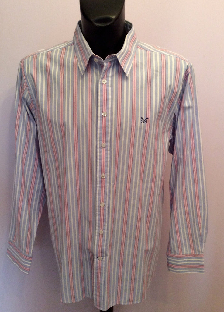 Crew Clothing Pink & Blue Stripe Cotton Long Sleeve Shirt Size XL