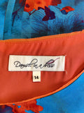 DAMSEL IN A DRESS TURQOUISE & ORANGE PRINT SILK SHIFT DRESS SIZE 14