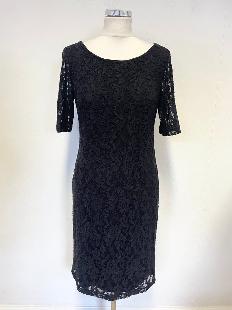 DANILO BLACK FLORAL LACE SHORT SLEEVED PENCIL DRESS SIZE 2 UK 12
