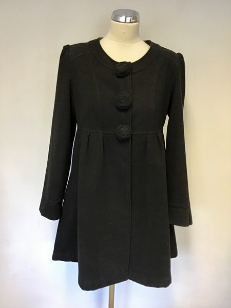 DARLING BLACK COLLARLESS JUST ABOVE KNEE LENGTH COAT