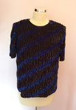 Debut Black & Blue Sequinned Short Sleeve Top Size 12
