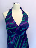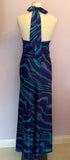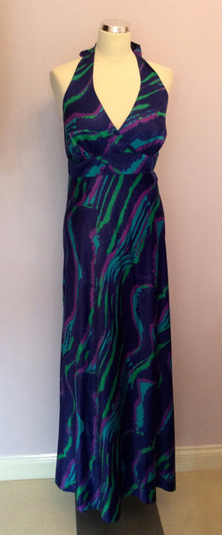 Debut Purple, Pink & Green Print Satin Halterneck Maxi Dress Size 16