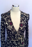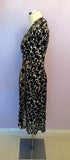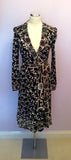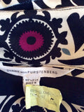 Diane Von Furstenberg Black & Ivory Print Silk Wrap Dress Size 10