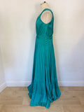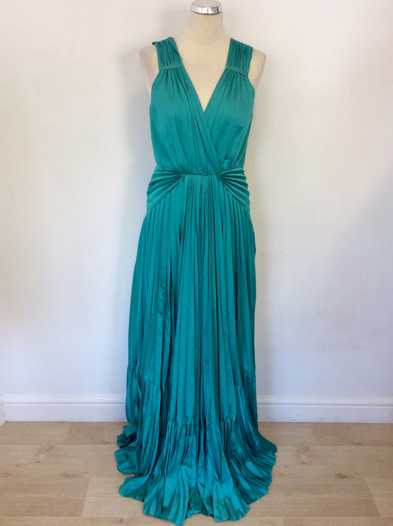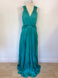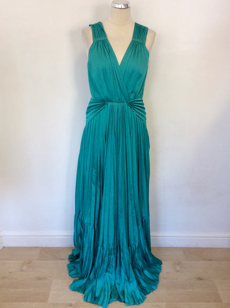 DIANE VON FURSTENBERG GREEN PLEATED GRECIAN STYLE LONG EVENING DRESS SIZE 12